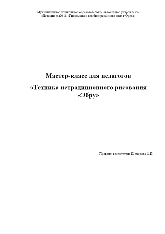 Мастер-класс для педагогов "Техника нетрадиционного рисования "Эбру" Щемеровой О.П.