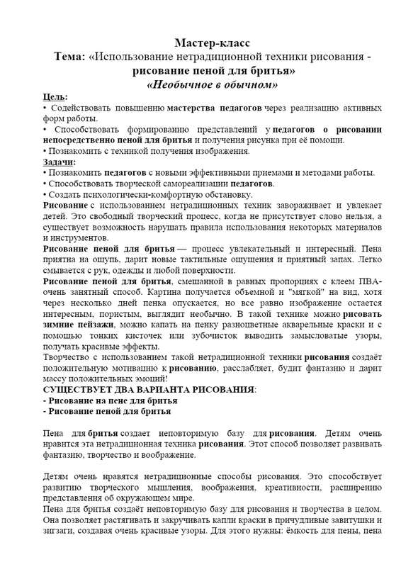 Мастер- Класс Ленкова Наталья Геннадьевна рисование пеной для бритья "Необычное в обычном"