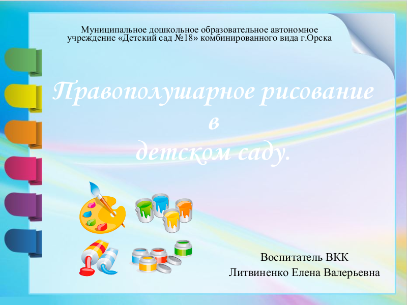 Мастер-класс "Правополушарное рисование в ДОУ"-педагог Литвиненко Е.В. Обобщение опыта на ГМО по художественно-эстетическому развитию детей".